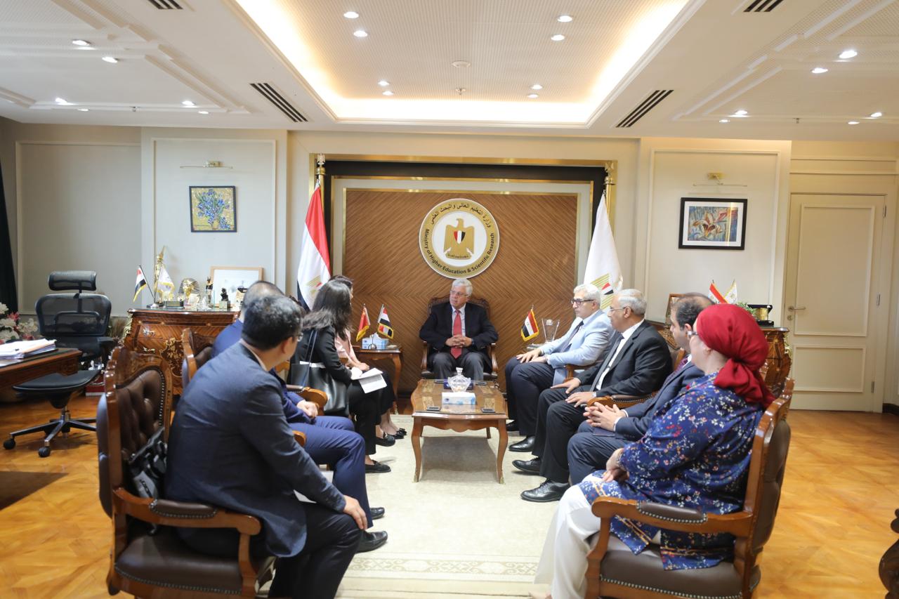 وزير التعليم العالي يبحث مع نائب وزير العلوم والتكنولوجيا الصيني آليات التعاون