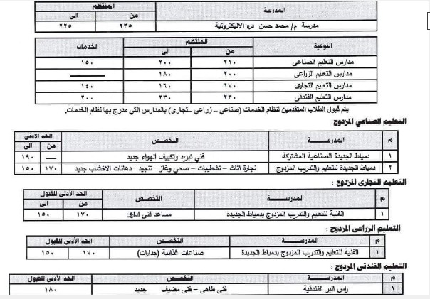 تعديل تنسيق القبول بمدارس التعليم الفنى 2025 في دمياط