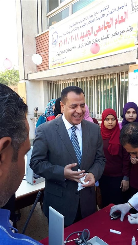 افتتح الدكتور شحاتة غريب شلقامى نائب رئيس جامعة أسيوط لشئون التعليم والطلاب، حملة 100 مليون صحة خلال تواجدها فى كلية التمريض، كما خضع لإجراءات الفحص الطبى والتى تشمل المسح على أمراض السكر والضغط والسمنة وفحص فيروس سى.