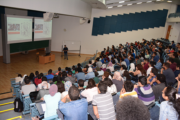 نظمت الجامعة الألمانية بالقاهرة لطلاب كليتي هندسة وتكنولوجيا المعلومات وهندسة وعلوم المواد سلسلة من المحاضرات التعليمية التدريبية جاءت بعنوان "تقييم نظم السلامة في أنظمة الطيران" التي حاضر فيها ابن الجامعة " أكرم عبد اللطيف "خريج كلية هندسة وتكنولوجيا المعلومات وأول رائد فضاء مصرى وحالياً يتعاون مع وكالة الفضاء الألمانية لإتمام رسالته للحصول على درجة الدكتوراه بقسم ديناميكية أنظمة الطيران في الجامعة التقنية بميونخ TUM التي تعد من أكبر الجامعات الألمانية ، وقد حبي هذا اللقاء بحضور وإقبال عدد كبير من طلاب الجامعة وأعضاء هيئة التدريس حيث وصل عدد الحضور إلى ما يقرب من 300 مشارك مما يعكس شغفهم للأطلاع على أحدث ما توصل إليه العلم في هذا المجال.
