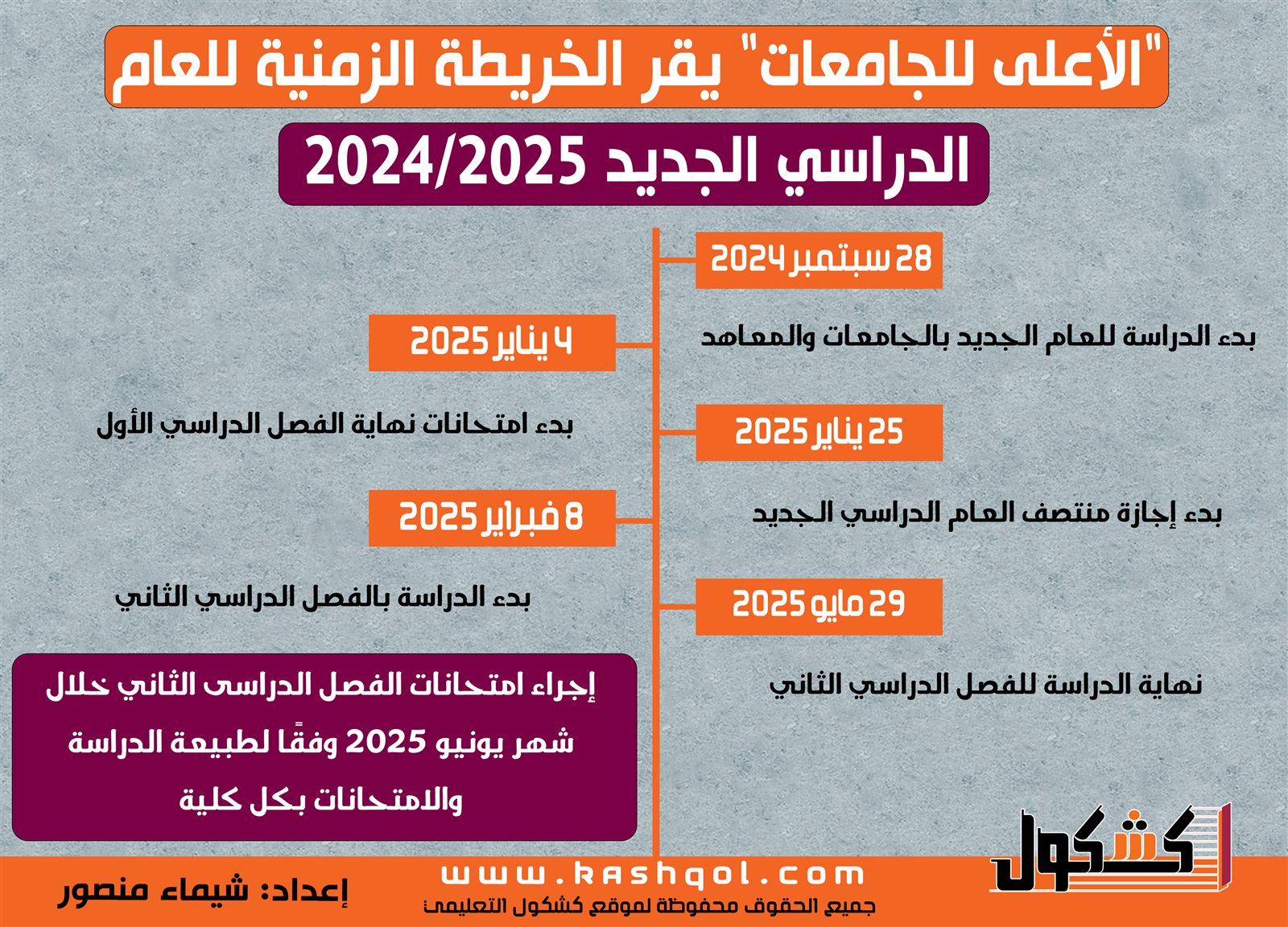 الخريطة الزمنية للعام الدراسي الجديد 2024/2025 بالجامعات