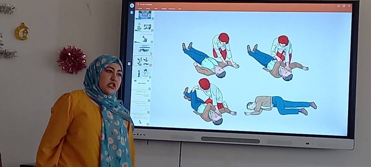 كما تم استعراض جهاز الصدمات الآلي، حيث أكدت الدكتورة نهال على أن استخدامه أثناء الإسعاف الأولي يعزز من فرص نجاة المريض.
