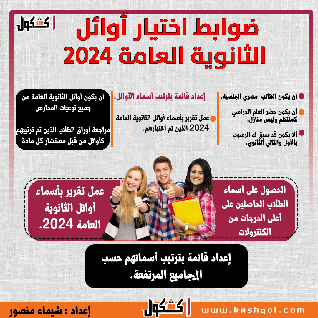 - تفحص لجنة عليا أوراقهم، ثم يتم عمل تقرير بأسماء أوائل الثانوية العامة 2024 الذين تم اختيارهم.