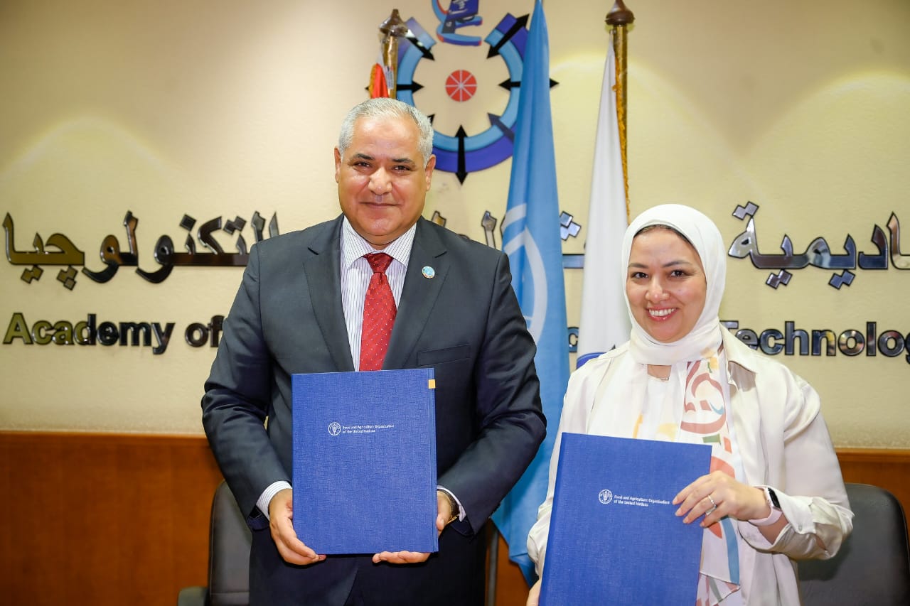 وقعت أكاديمية البحث العلمي والتكنولوجيا برئاسة الدكتورة جينا الفقي القائم بأعمال رئيس الأكاديمية، بروتوكول تعاون مشترك مع منظمة الأغدية والزراعة للأمم المتحدة (الفاو) ويمثلها الدكتور عبدالحكيم الواعر، مساعد المدير العام والممثل الإقليمي لمنظمة الأغذية والزراعة لمنطقة الشرق الأدنى وشمال إفريقيا، برعاية الدكتور أيمن عاشور وزير التعليم العالي والبحث العلمي.