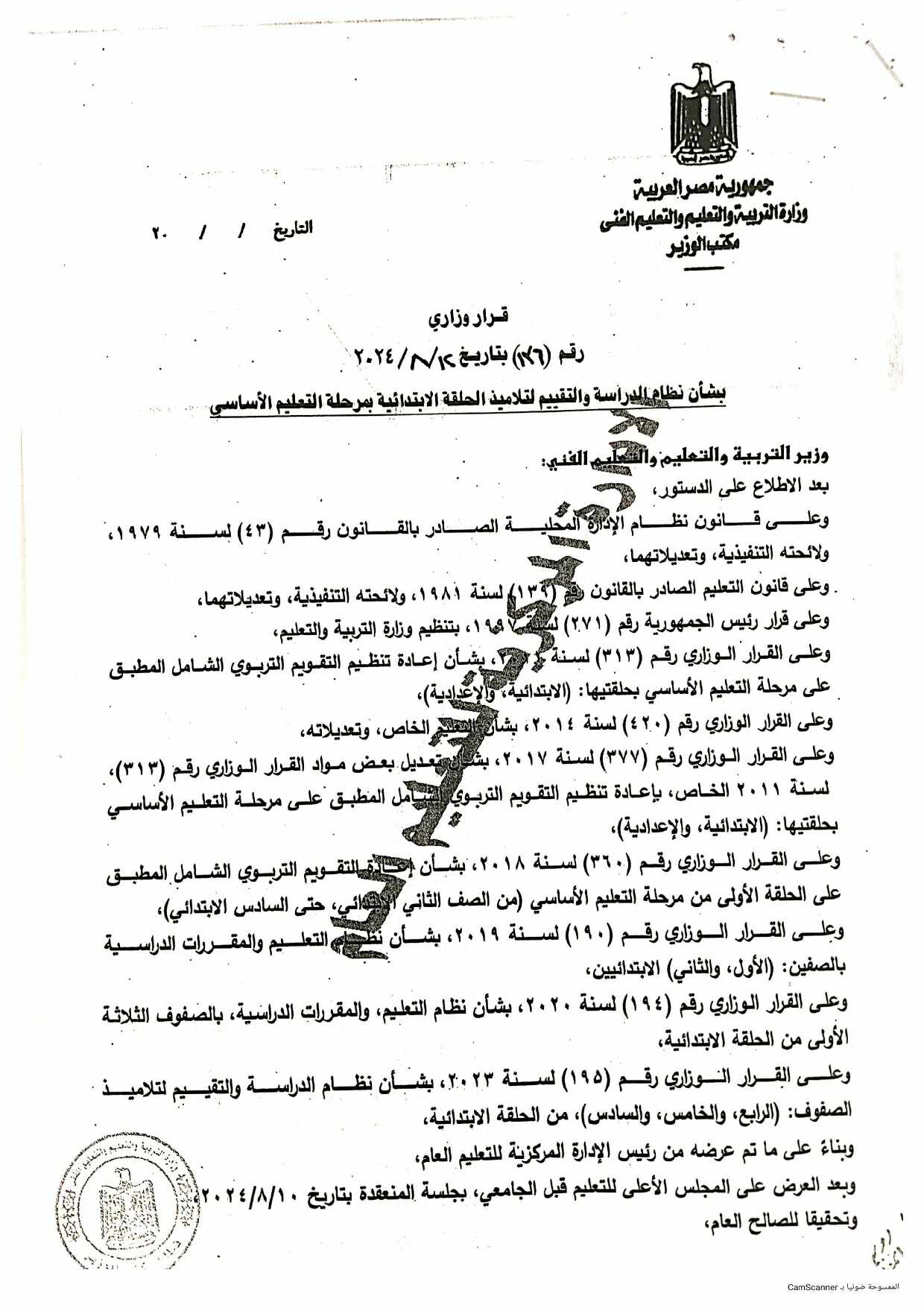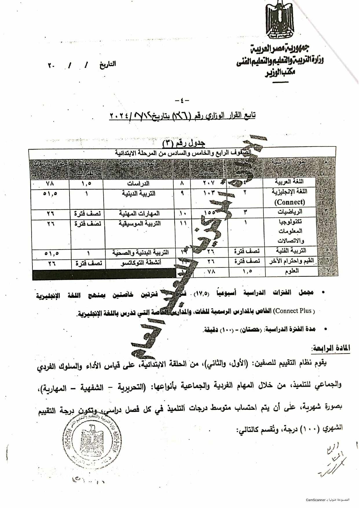 جاء ذلك في القرار الوزاري الخاص بالمرحلة الابتدائية من الصف الأول للصف السادس حيث حدد خلاله وزير التربية والتعليم عدد المواد والدرجات وطريقة التقييم لكل صف دراسي.