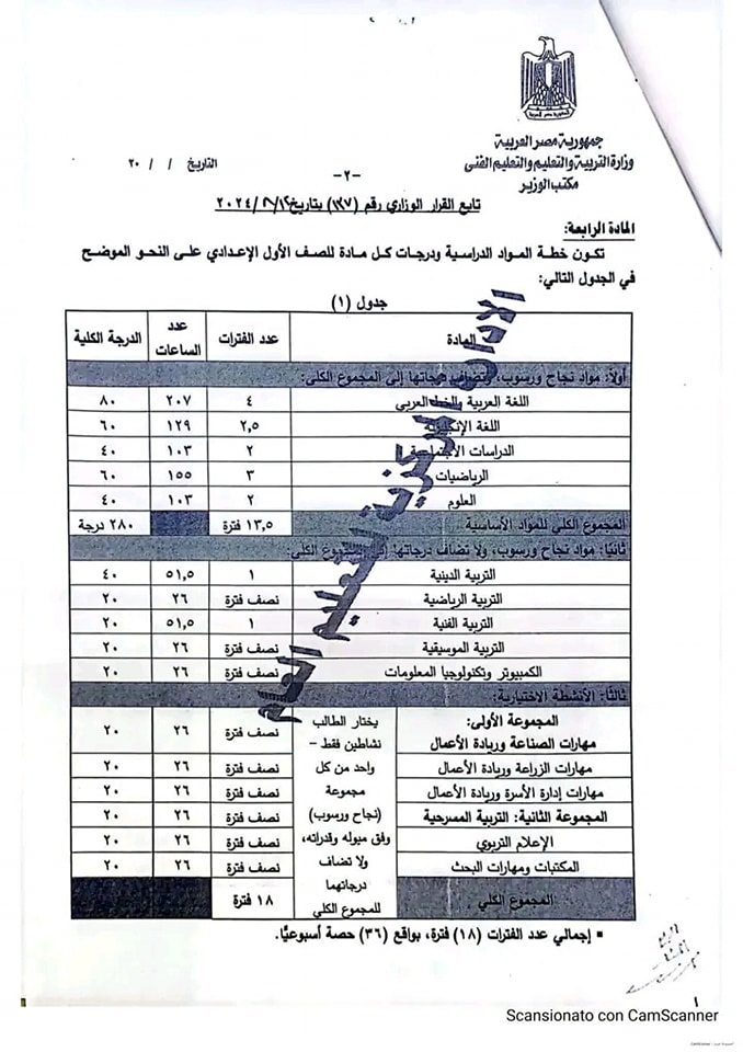 وأصدر محمد عبد اللطيف، وزير التربية والتعليم، القرار الخاص بالصف الأول الإعدادي، للعام الدراسي الجديد، بالمواد المقرر تدريسها بعد إضافة الصف الأول إلى صفوف التطوير.