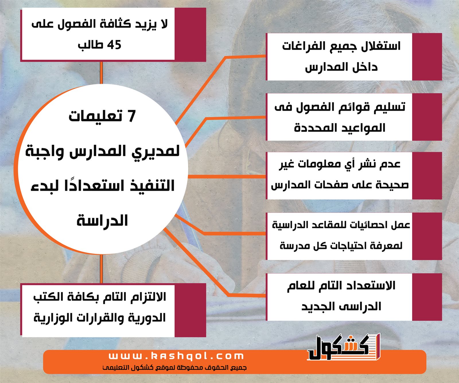 7 تعليمات لمديري المدارس واجبة التنفيذ استعدادًا لبدء الدراسة