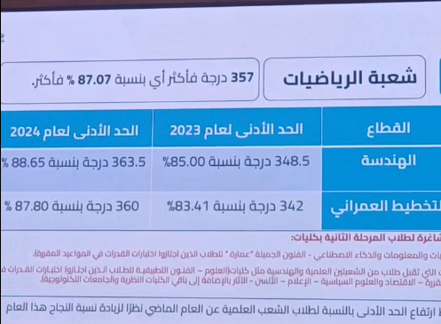 وأشار وزير التعليم العالي والبحث العلمي، إلى أن ارتفاع الحد الأدنى بالنسبة لطلاب الشعبة العلمية والهندسية عن العام الماضي نظرًا لزيادة نسبة النجاح هذا العام.