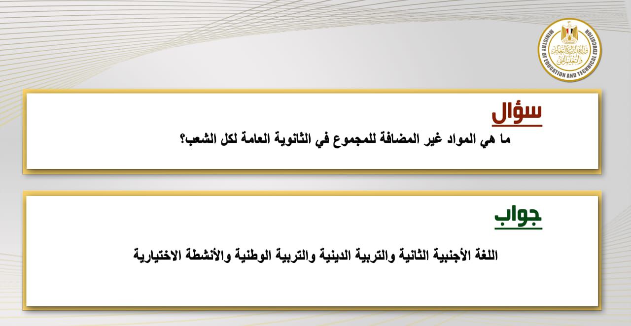 المواد الغير المضافة للمجموع بالثانوية العامة
