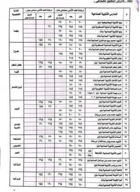 تخفيض الحد الأدنى للقبول ببعض مدارس التعليم الفنى بالقليوبية