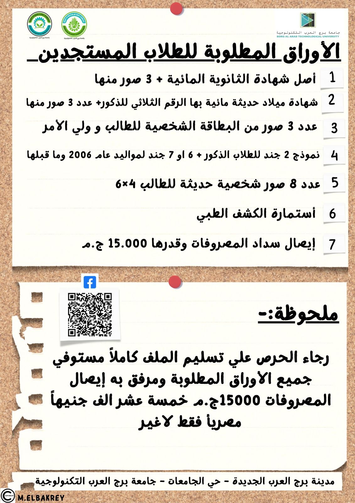 جامعة برج العرب التكنولوجية.. الأوراق المطلوبة