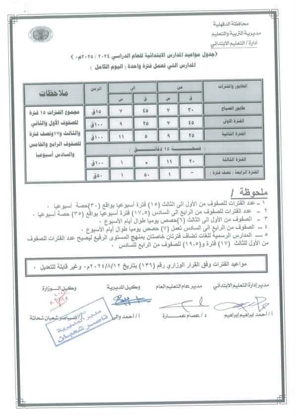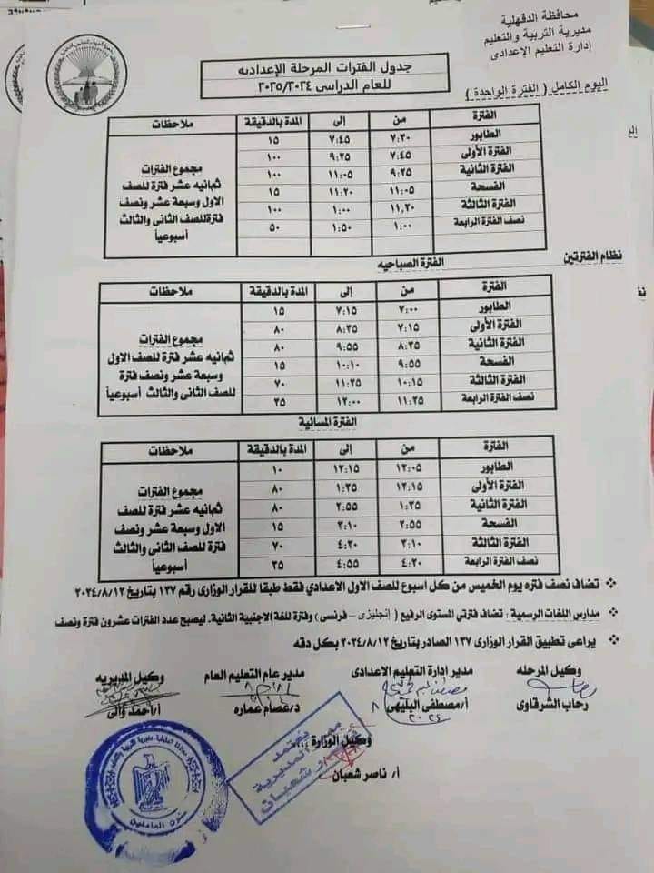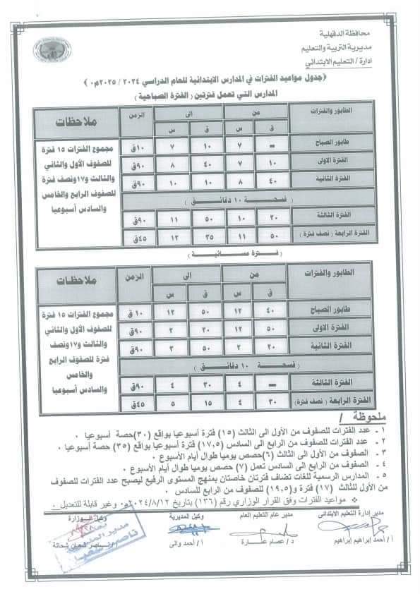 ويمكن الإطلاع على مواعيد الفترات للمرحلتين الابتدائية والإعدادية من الصور التالية: