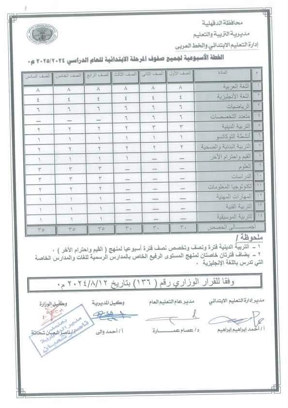 أعلنت مديرية التربية والتعليم والتعليم الفني بمحافظة الدقهلية، جداول فترات المرحلتين الابتدائية والإعدادية بالعام الدراسي الجديد 2024/2025 الذي ينطلق يوم السبت الموافق 21 سبتمبر المقبل.