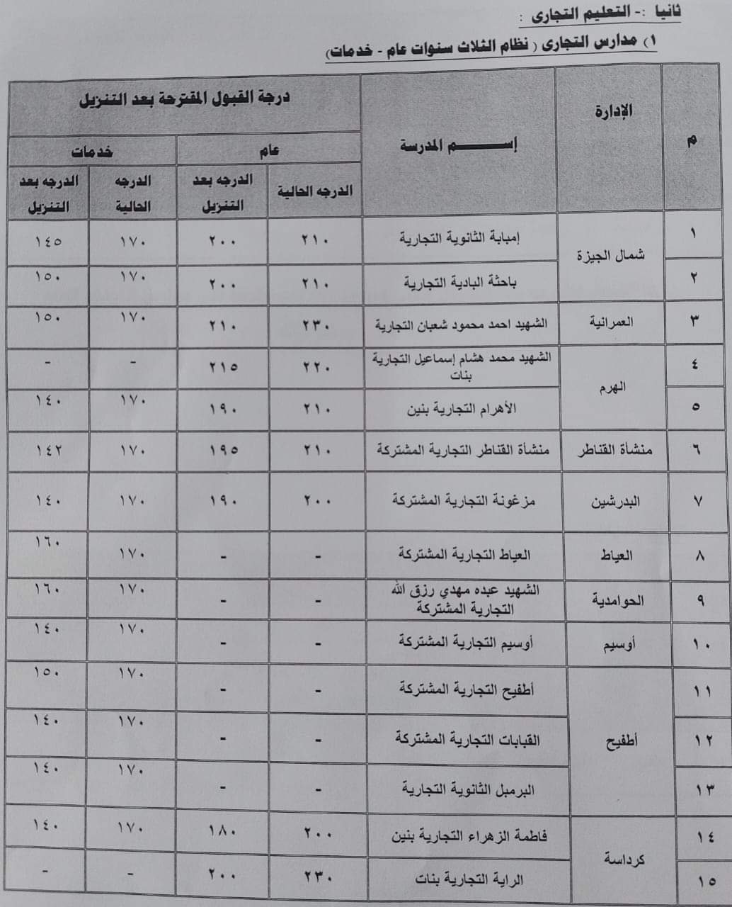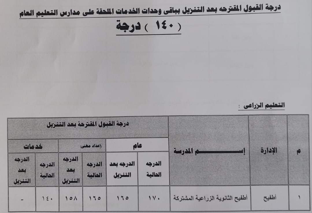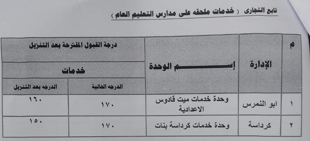 تخفيض تنسيق القبول بالثانوي العام خدمات 15 درجة بالجيزة