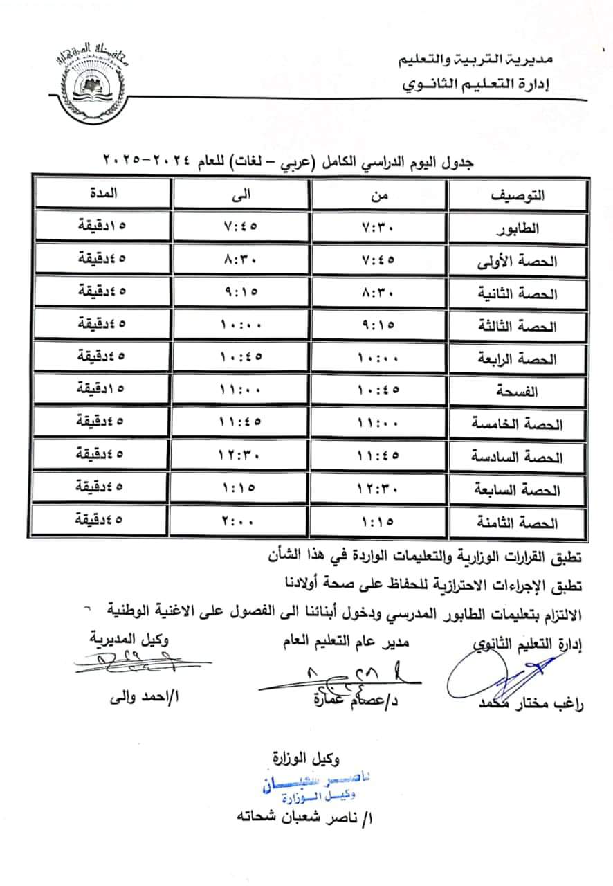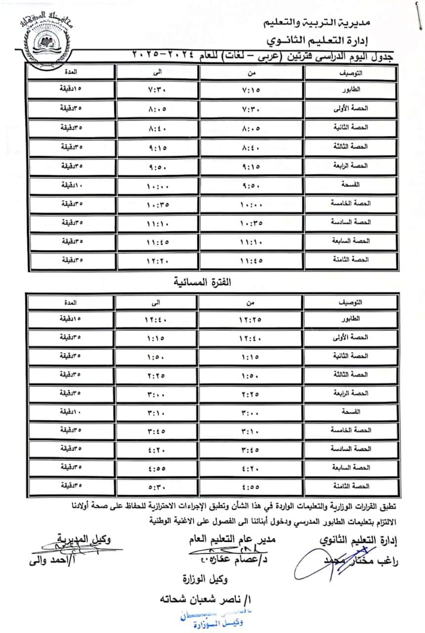ويمكن معرفة مواعيد الفترات الصباحية والمسائية للمرحلة الثانوية العامة بمدارس محافظة الدقهلية من خلال مطالعة الجداول التالية: