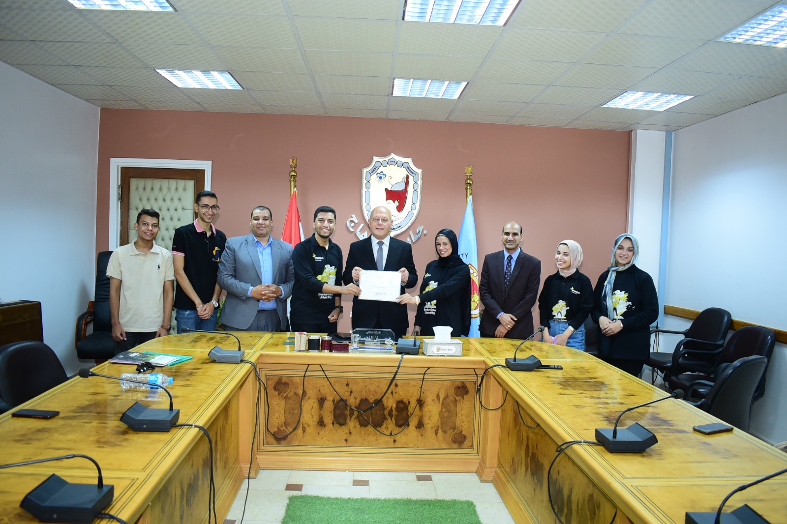 كرم الدكتور حسان النعماني رئيس جامعة سوهاج الفريق الطلابي الممثل لـenactus الجامعة والذي فاز المسابقة Enactus Egypt النهائية ضمن 35 جامعة على مستوى الجمهورية، وذلك بحضور الدكتور عبدالعليم سعد مشرف الفريق، والدكتور محمود عبدالعليم المدير التنفيذي لصندوق دعم المبتكرين والنوابغ بالجامعة.