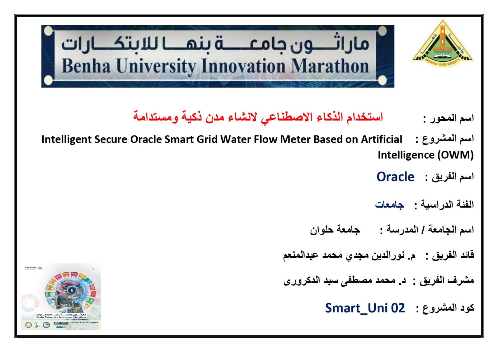 في حين شارك فريق "Oracle" في مسار إنشاء المدن الذكية والاستدامة، وضم كلًا من: نورالدين مجدي، مهاب ياسر، عبد الرحمن بدوي، عبد الرحمن أشرف، ومحمد محمود أحمد.