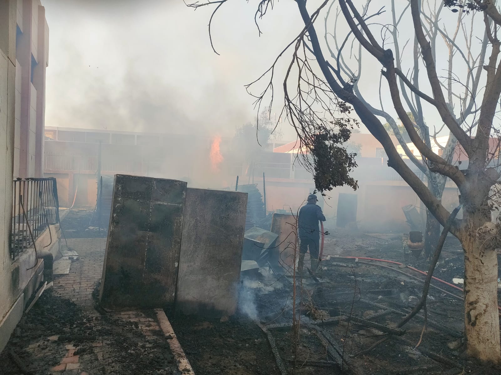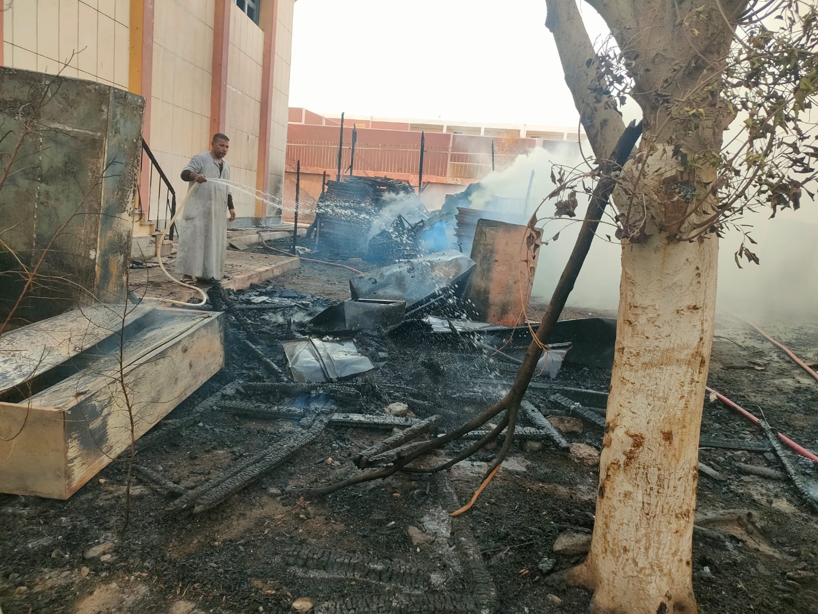 وأوضح شهود عيان، أن الحريق اندلع في الصالة المغطاة التابعة للإدارة التعليمية، و٣ مكاتب بالمبني تحتوي أوراق ومستندات تابعة للإدارة، كما امتد الحريق إلى أعلى سطح مبنى الإدارة التعليمية ومبني الشؤون ومخازن الإدارة التعليمية حيث التهم الحريق مراتب قطن وملفات ورقية بمبنى الإدارة التعليمية والشئون.