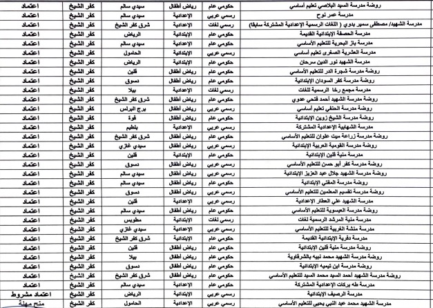 والمدارس الحاصلة على الإعتماد والجودة موزعة على 12 إدارة تعليمية، 7 مدارس بإدارة سيدى سالم، و5 مدارس بإدارة شرق كفر الشيخ، و4 مدارس بكل من إدارتى دسوق وقلين، و3 مدارس بإدارة الرياض، و2 مدرسة بإدارتى بيلا وسيدى غازى، ومدرسة واحدة بكل من الحامول وفوه ومطوبس وبرج البرلس وبلطيم بذلك يصبح إجمالي عدد المدارس المعتمدة 347 مدرسة بالمحافظة، ليصبح إجمالي المدارس المعتمدة بكل إدارة، إدارة سيدى سالم 62 مدرسة، وإدارة شرق كفر الشيخ 50 مدرسة، وإدارة الرياض 43 مدرسة، وإدارة قلين 37 مدرسة، وإدارة بيلا 27 مدرسة، وإدارة دسوق 26 مدرسة، وإدارة غرب كفر الشيخ 21 مدرسة، وإدارة بلطيم 21مدرسة، وإدارتي مطوبس والحامول بكل منهما 16 مدرسة معتمدة، وإدارة فوه 11 مدارس، وإدارة سيدى غازى 9 مدرسة، وبرج البرلس 8 مدرسة معتمدة.