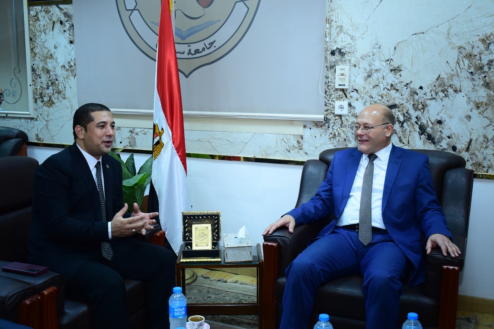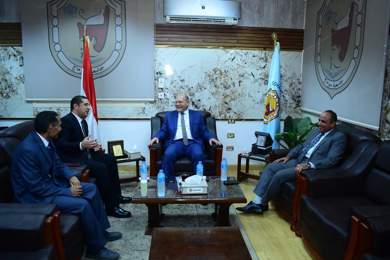 استقبل الدكتور حسان النعماني رئيس جامعة سوهاج الدكتور عاشور عمري عضو المركز القومى للتدريب وإعداد القيادات بأمانة المجلس الأعلى للجامعات سابقًا، للوقوف على الاستعدادات النهائية لإعتماد مركز تنمية قدرات أعضاء هيئة التدريس والقيادات بالجامعة، بحضور الدكتور خالد عمران نائب رئيس الجامعة لشئون خدمة المجتمع وتنمية البيئة والدكتور عنبر محمود مدير المركز.