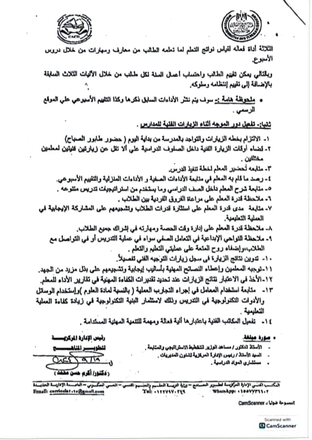 حيث شددت الوزارة على ضرورة التزام الموجهين بالآتي خلال الزيارات الفنية للمدارس من بداية الدراسة لنهايتها: