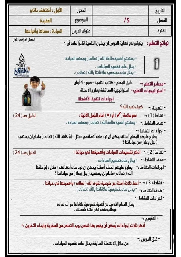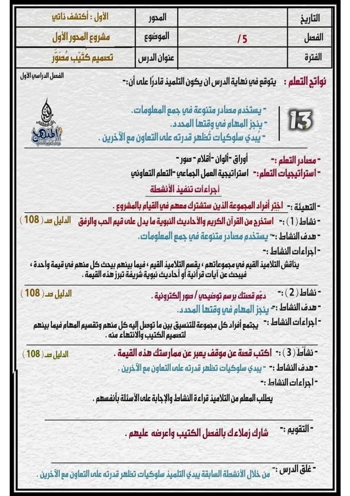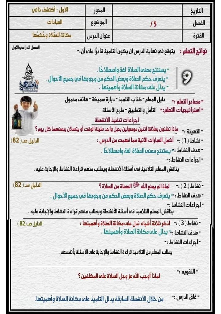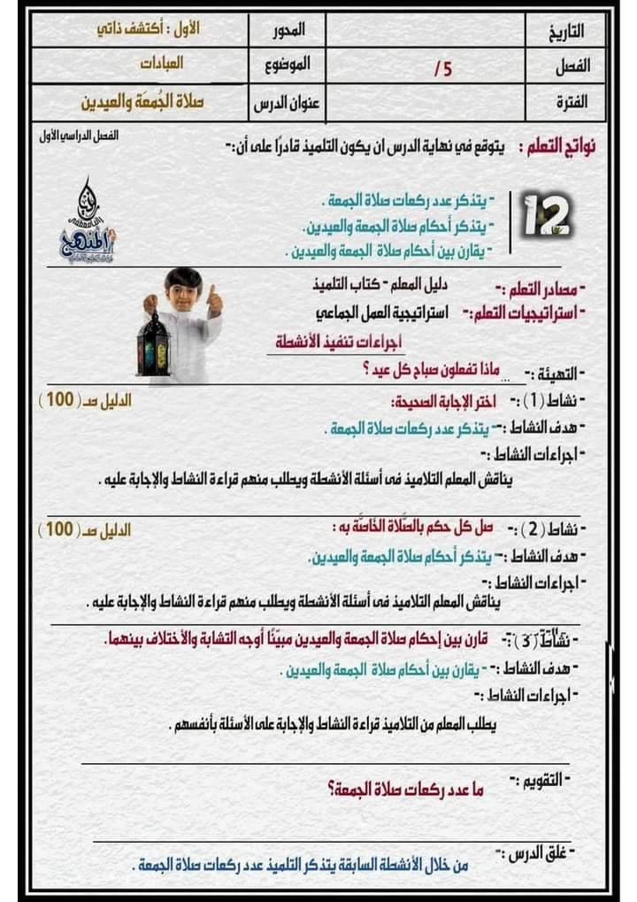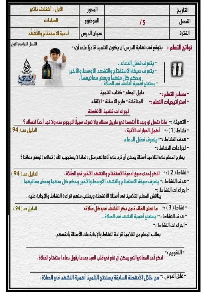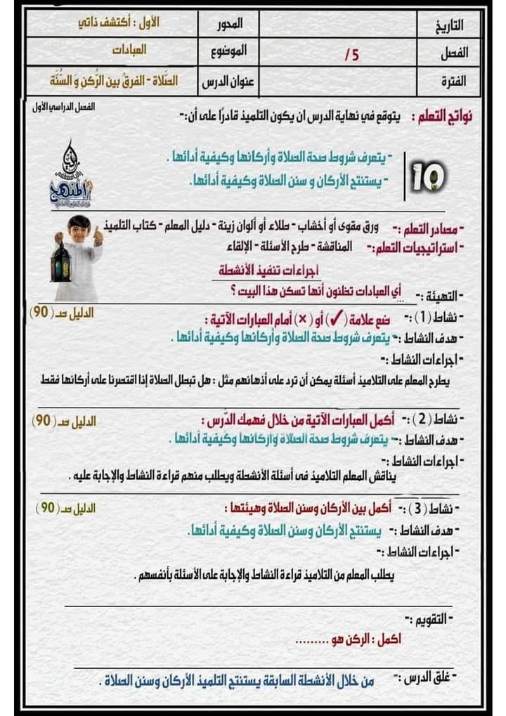 نموذج دفتر تحضير التربية الدينية الإسلامية للصف الخامس الابتدائي الترم الأول 2025