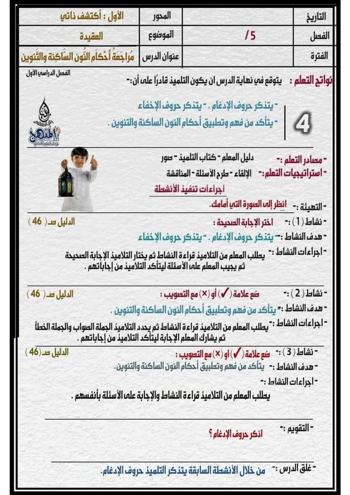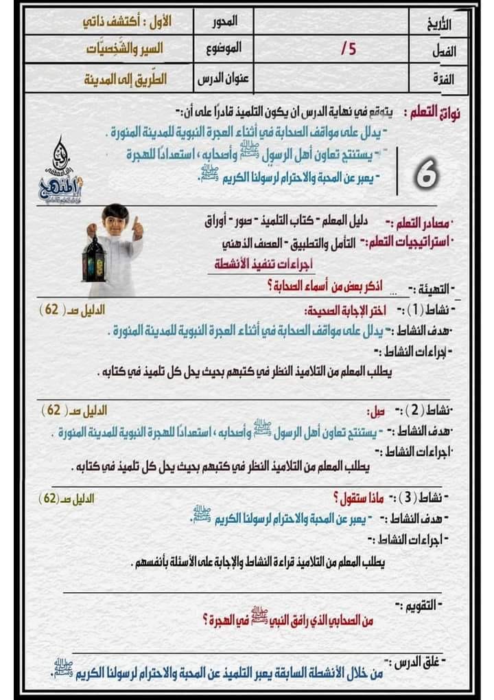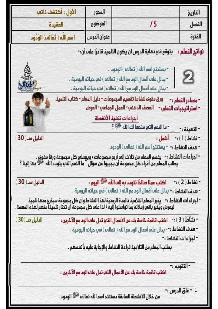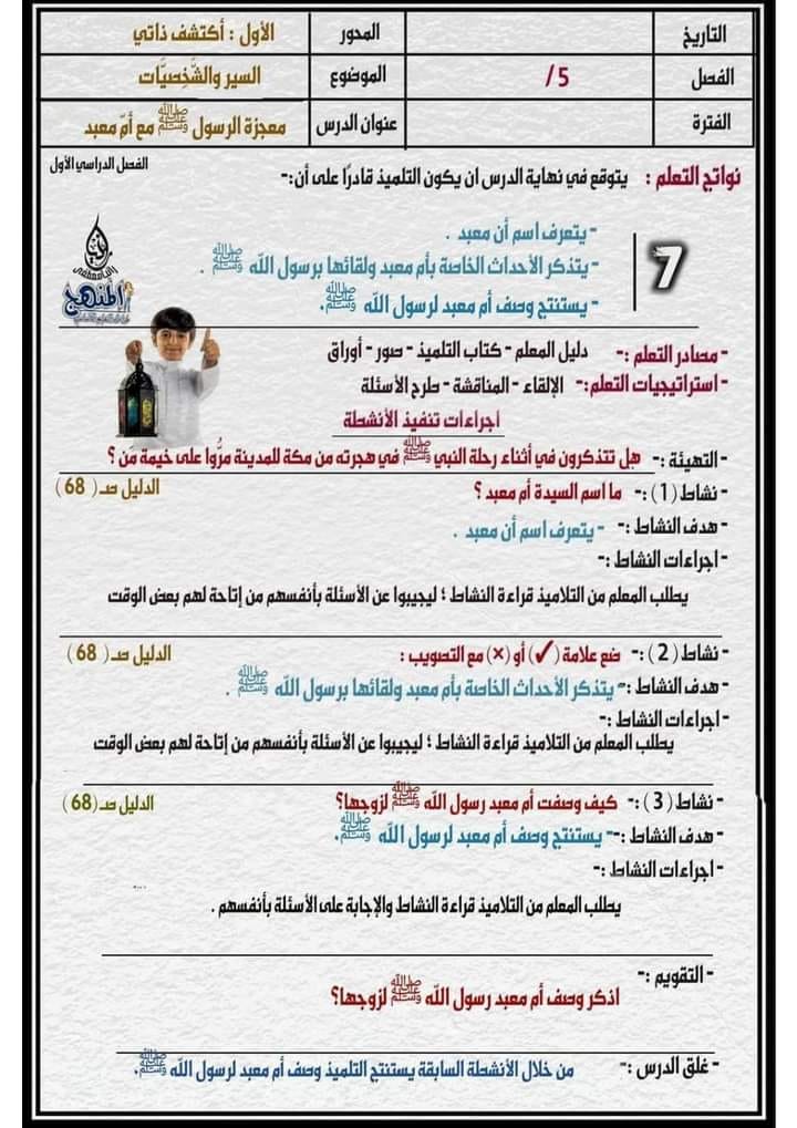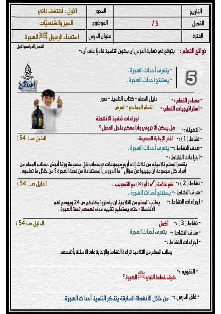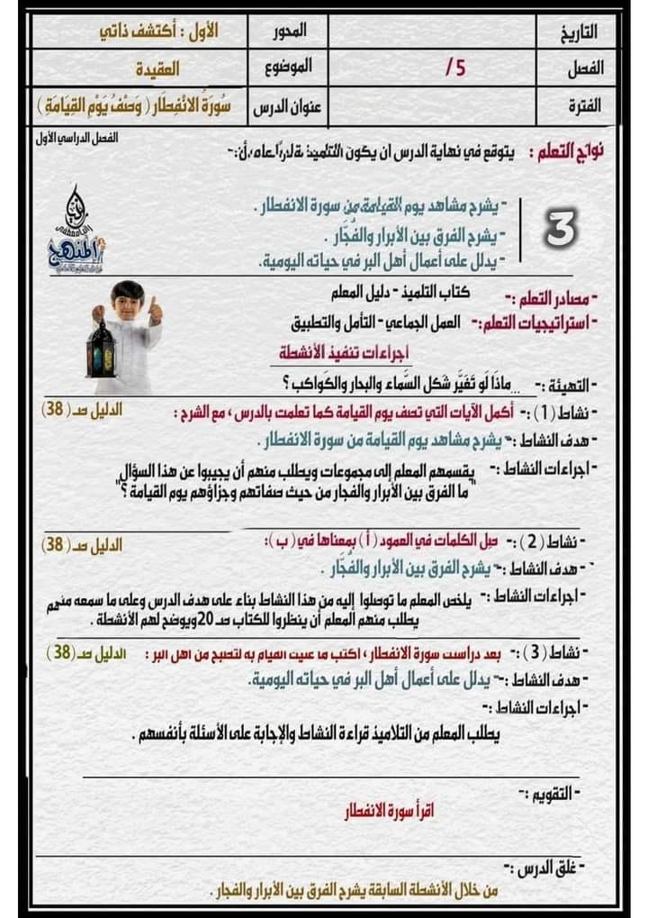 نموذج دفتر تحضير التربية الدينية الإسلامية للصف الخامس الابتدائي الترم الأول 2025