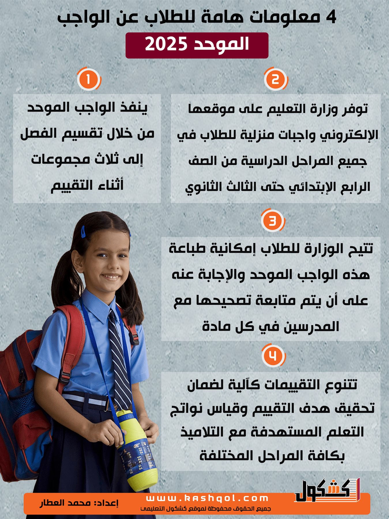 عاجل|إنفوجراف.. ما هو الواجب الموحد؟.. 4 معلومات هامة لطلاب المدارس