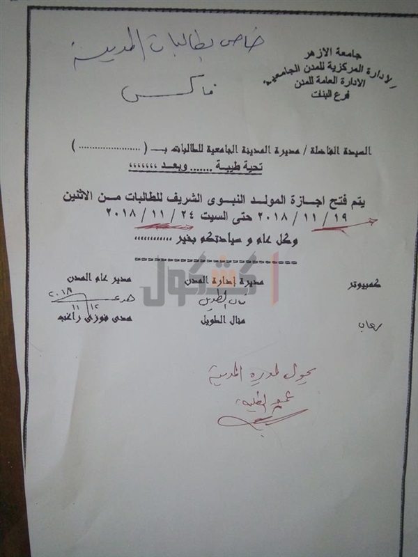 أن الجامعة قررت منح الطالبات إجازة رسمية فى الأيام المذكورة، وعلى من يرغب منهن السفر