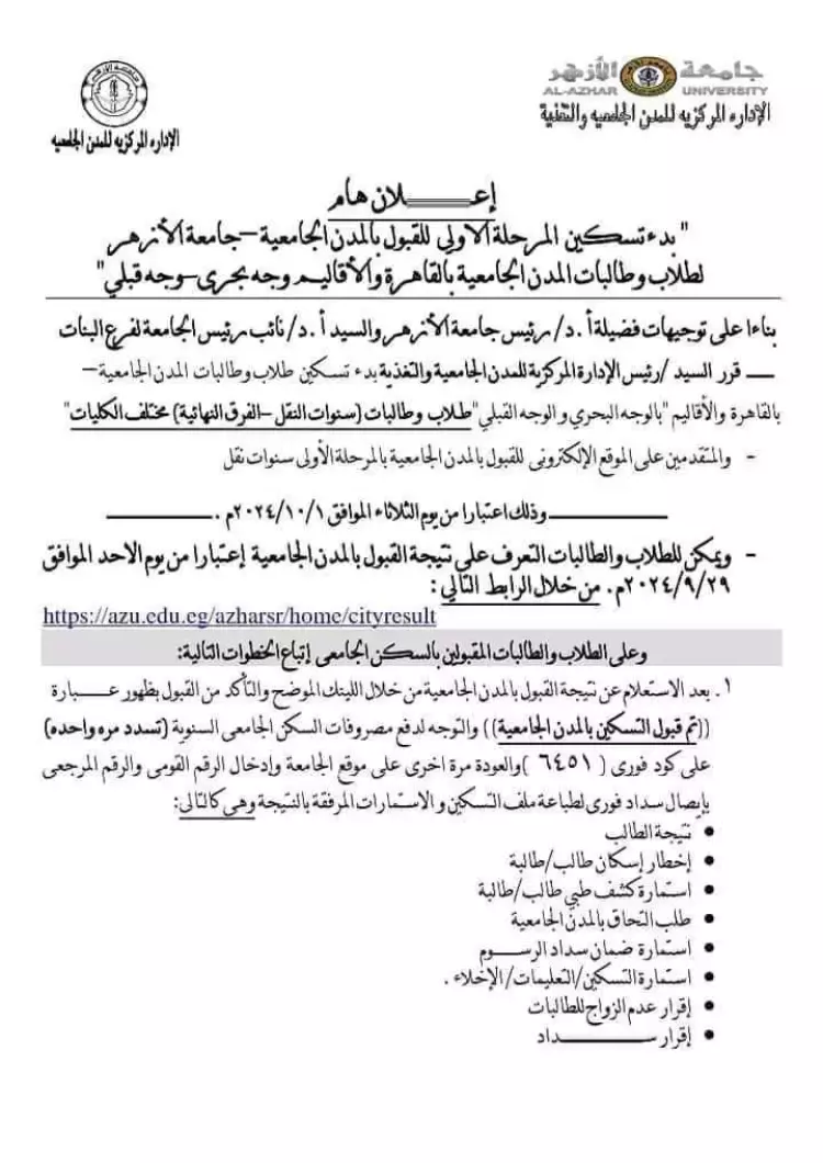 يمكن الاطلاع على مصاريف المدينة الجامعية بجامعة الأزهر 2024 2025، من خلال الصور التالية: