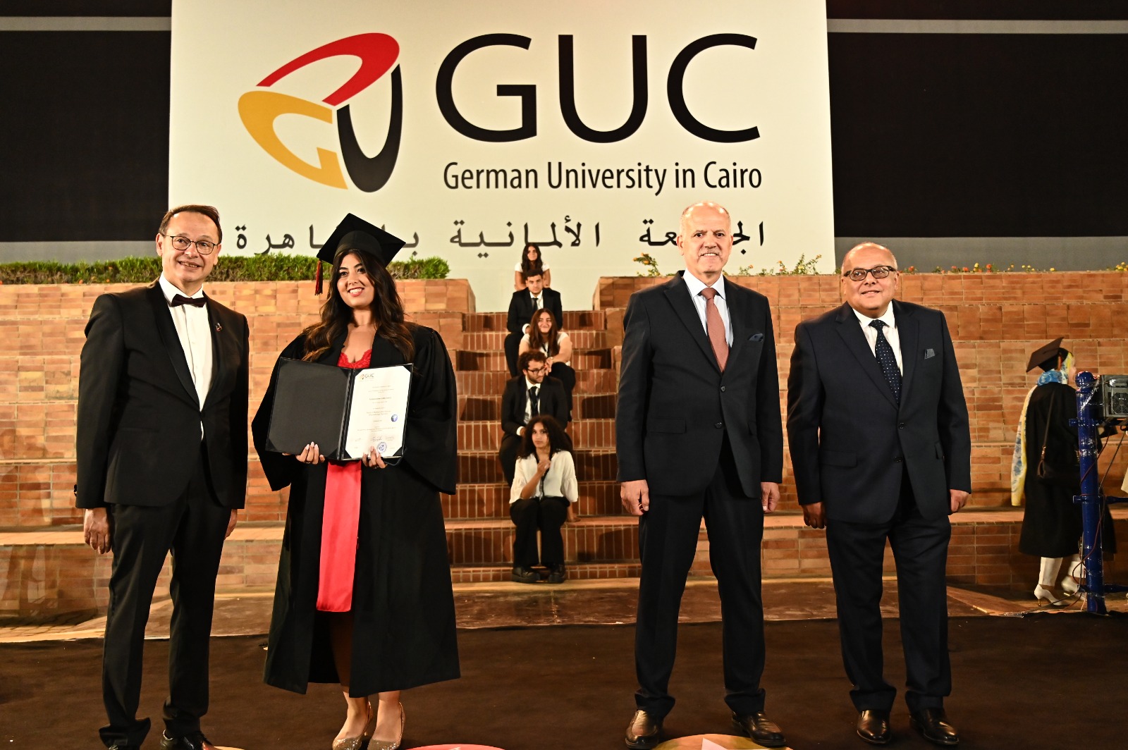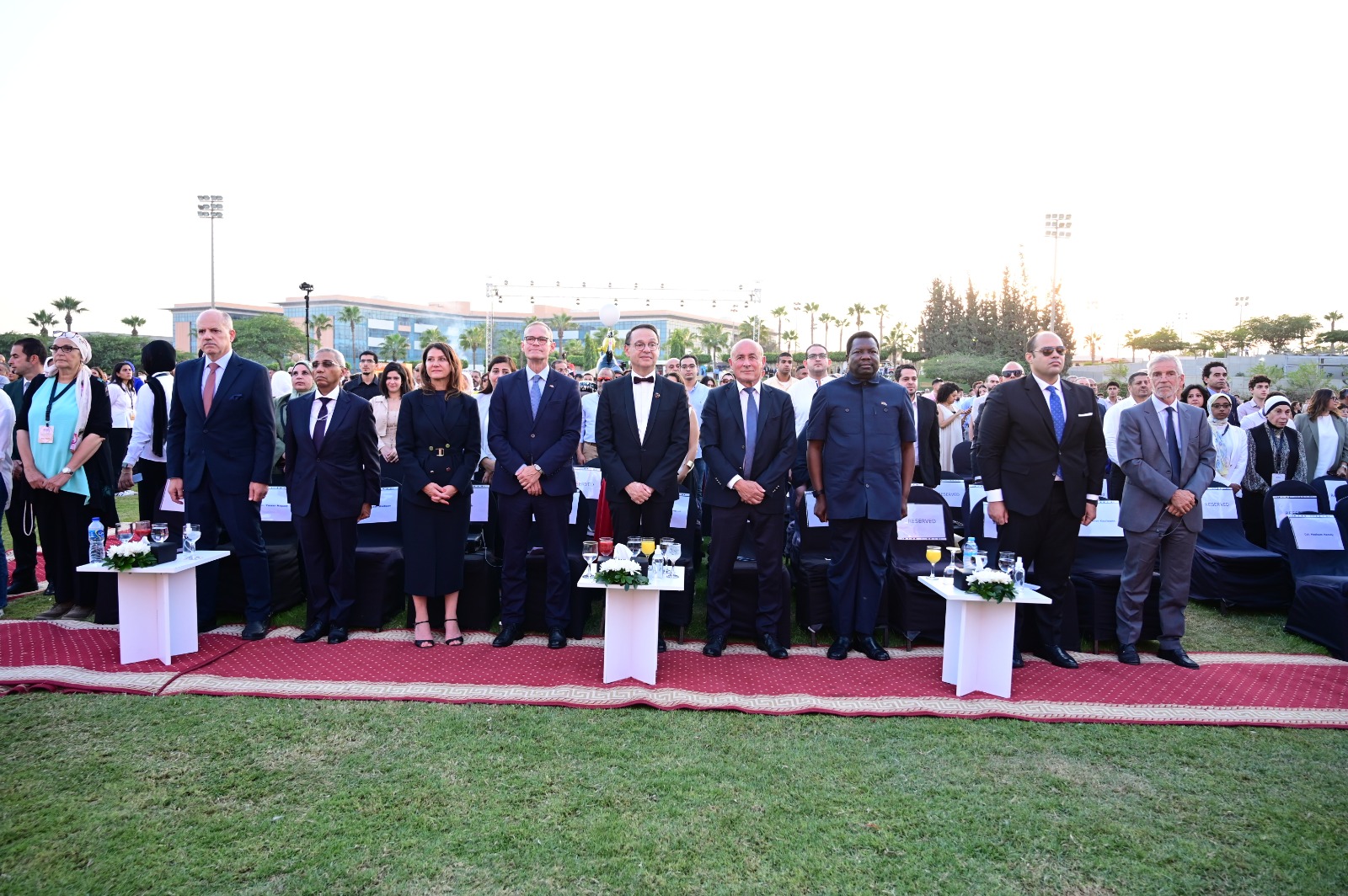 بدأت مراسم الحفل بعزف السلامين الوطنيين المصري والألماني، بحضور عدد من الشخصيات الألمانية رفيعة المستوى ميشائيل مولر عضو في البرلمان الألماني أحد أبرز أعضاء البرلمان المعنيين بالتعليم والثقافة، وديتر هالر السفير السابق لدولة ألمانيا وعضو مجلس أمناء مجموعة دوسمان Dussmann Group والسيد شايفان كارفمان الرئيس السابق لمحكمة الاستئناف في تورينجن والرئيس السابق للمحكمة الدستورية في تورينجن، ومن الجانب المصري الدكتور محمود ممتاز رئيس جهاز حماية المنافسة ومنع الممارسات الإحتكارية.
