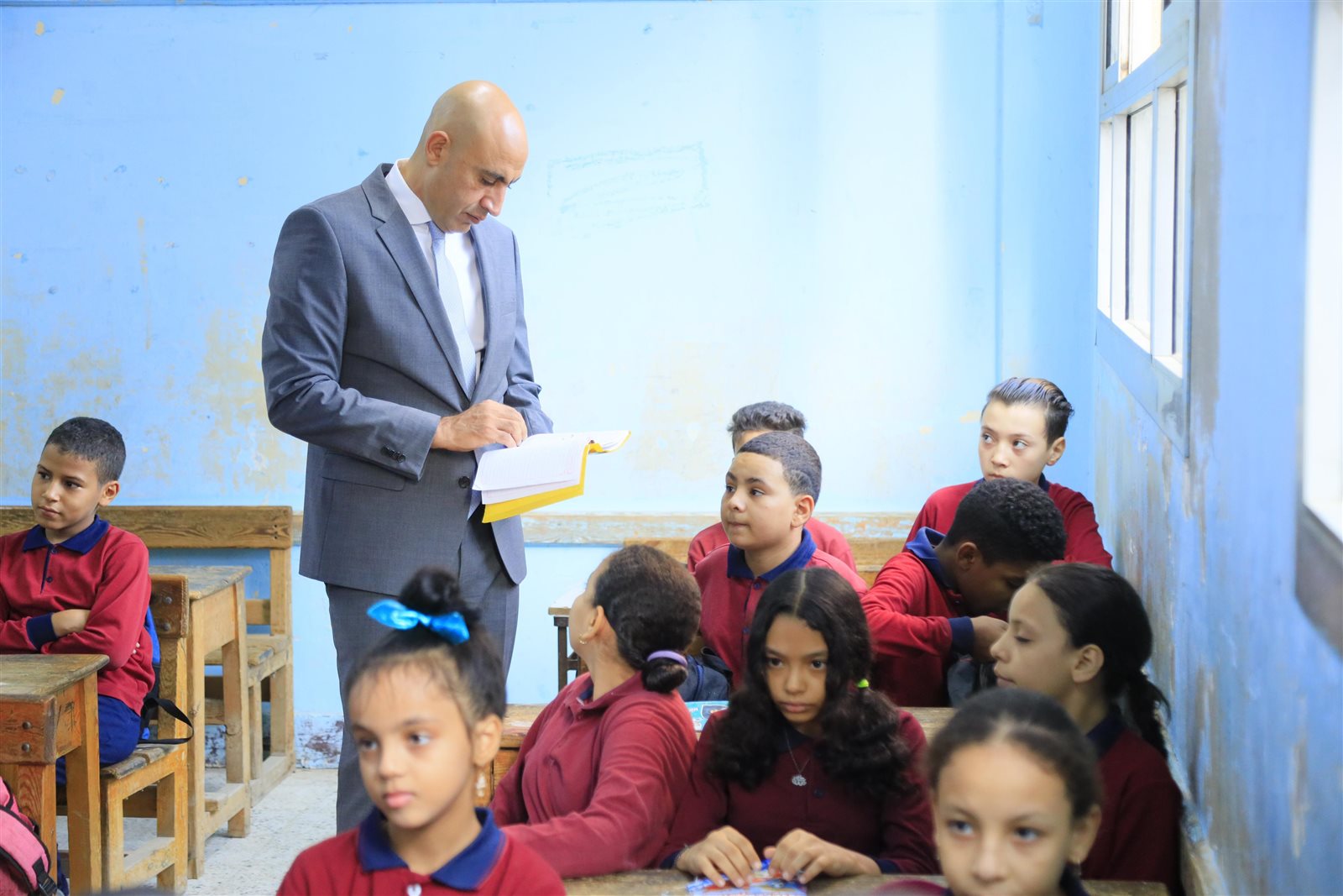 بعد اطلاعه على كراسات الطلاب.. "عبداللطيف" لمديري مدارس بعين شمس: "هجيلكم تاني"