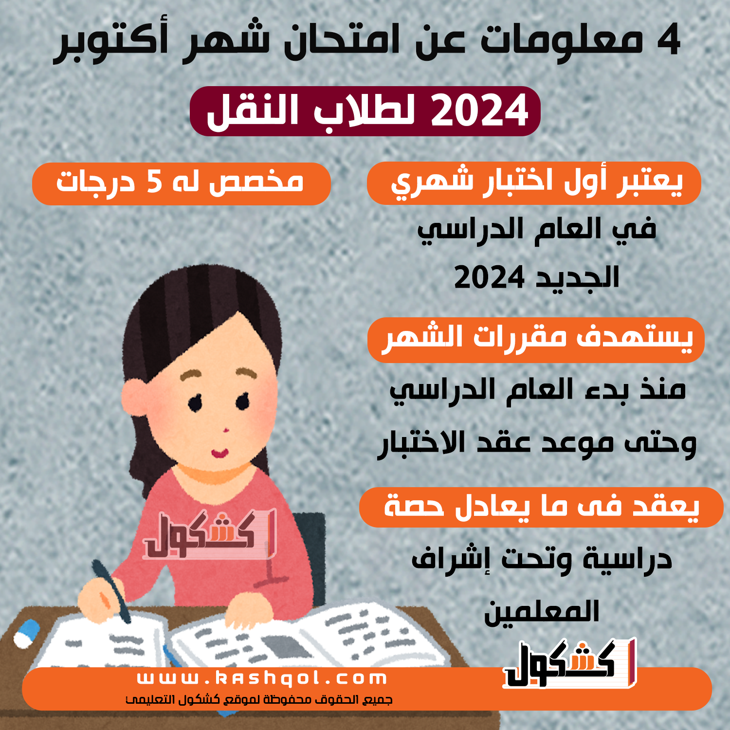 معلومات عن امتحان شهر أكتوبر 2024 لطلاب النقل