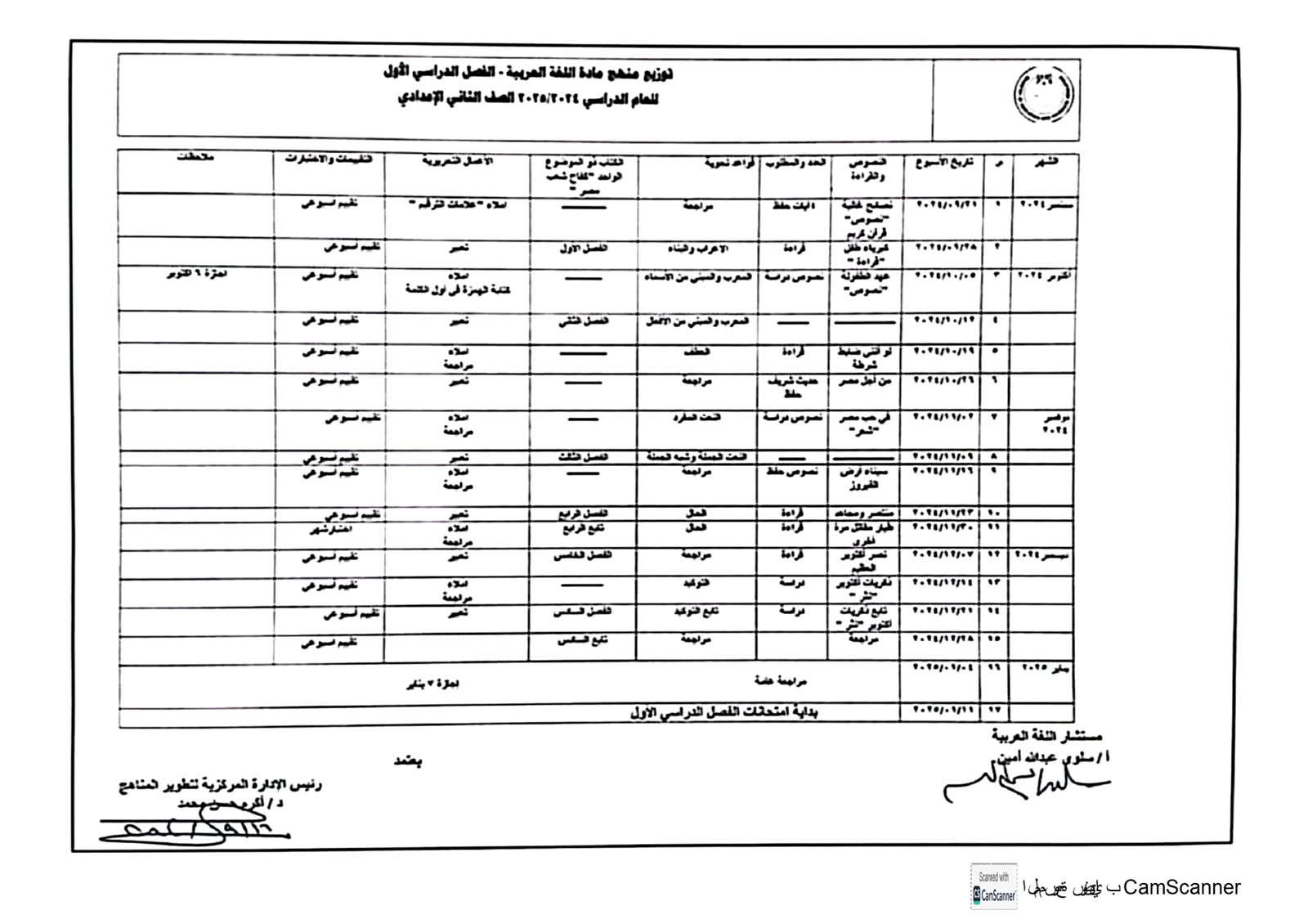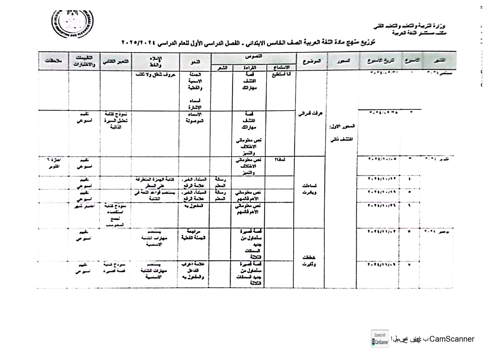 توزيع منهج اللغة العربية للمرحلة الابتدائية الترم الأول 2025