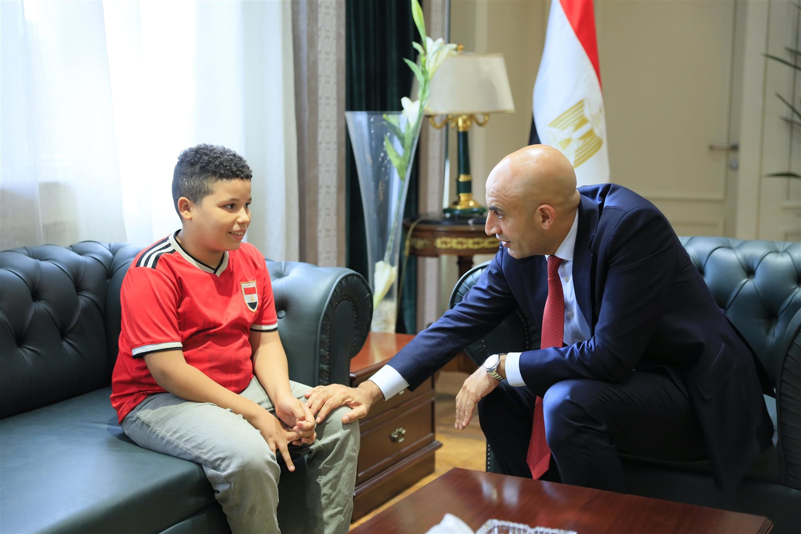 في لفتة إنسانية، استقبل محمد عبد اللطيف وزير التربية والتعليم والتعليم الفني، اليوم، الطالب علي حمادة محمود الطالب بالصف السادس الابتدائي بمدرسة ذات النطاقين بصفط اللبن بمحافظة الجيزة.