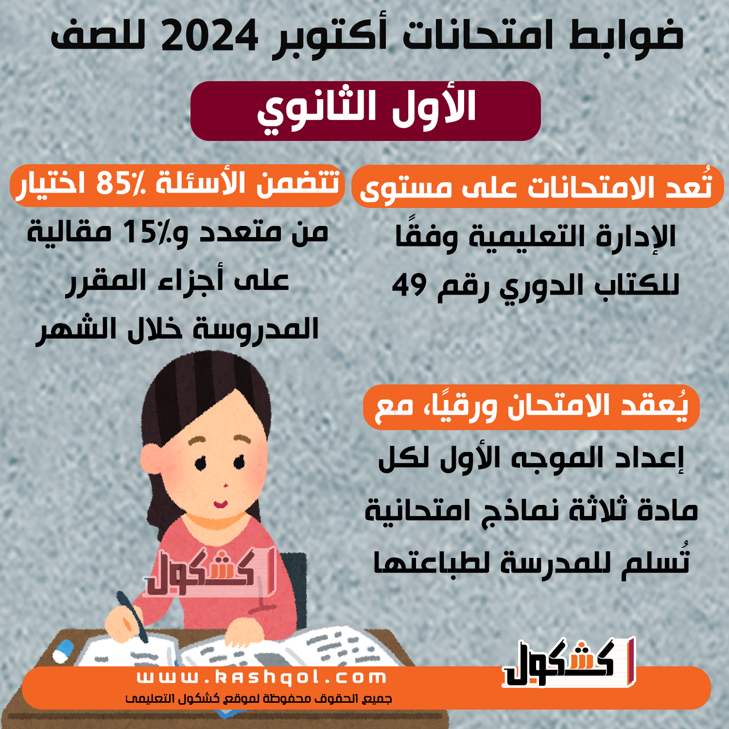 ضوابط امتحانات أكتوبر 2024 للصف الأول الثانوي (إنفوجراف)
