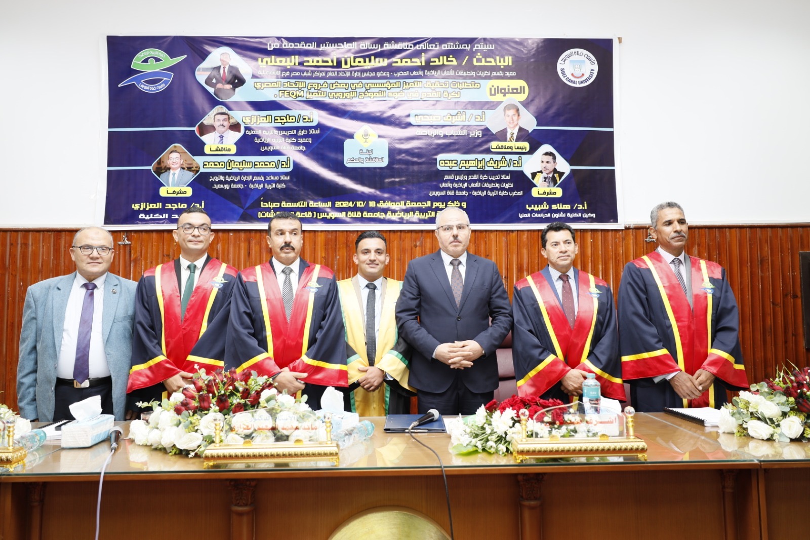 شهدت المناقشة حضور عدد من الشخصيات البارزة، من بينهم أعضاء مجلس النواب أحمد البعلي وعصام منسي، إضافة إلى إيهاب صلاح، مدير مديرية الشباب والرياضة بالإسماعيلية، الذين حضروا لدعم الباحث خالد أحمد سليمان أحمد البعلي.