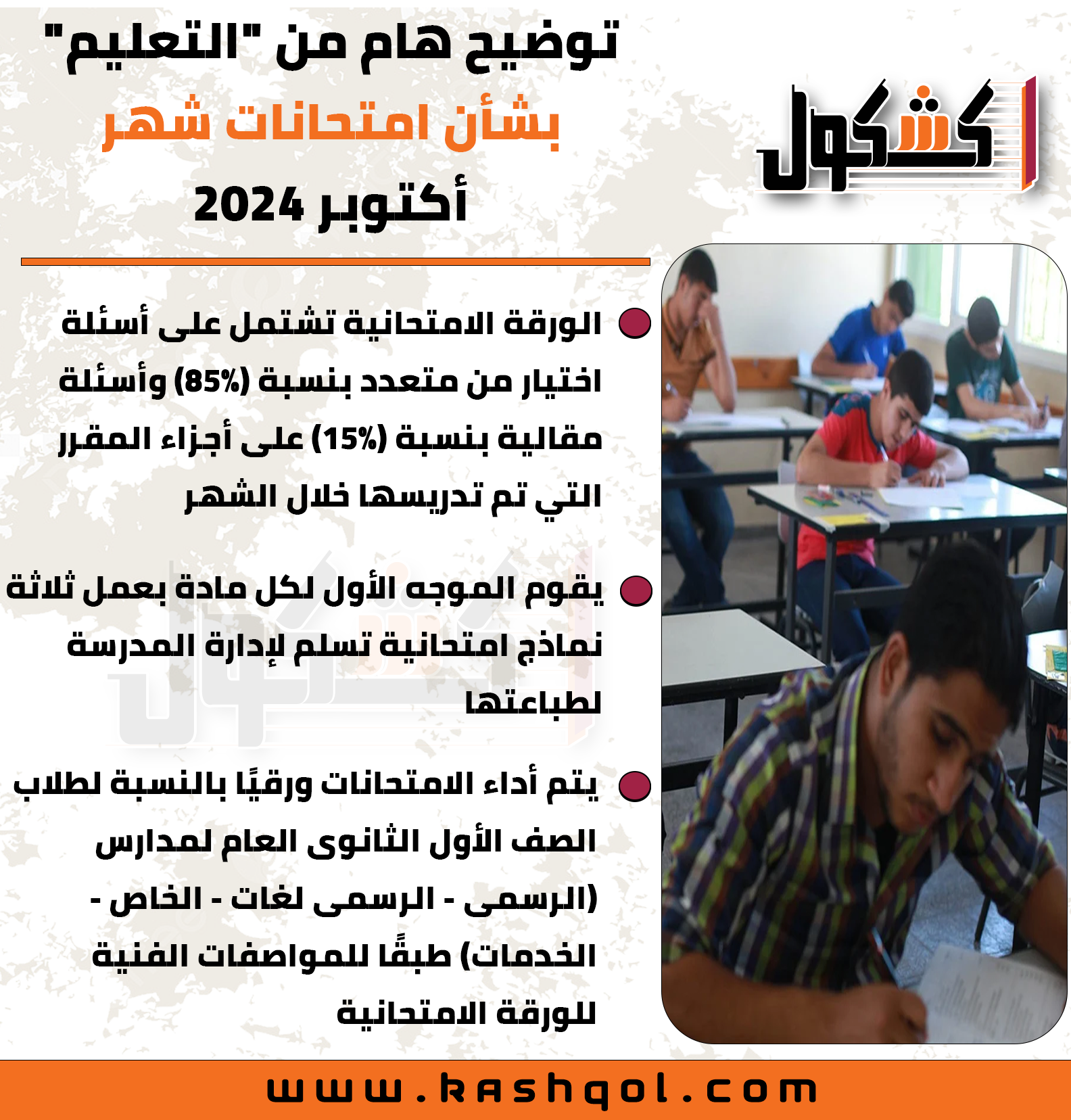 توضيح مهم بشأن امتحانات شهر أكتوبر 2024 (إنفوجراف)