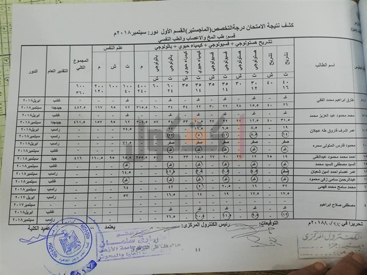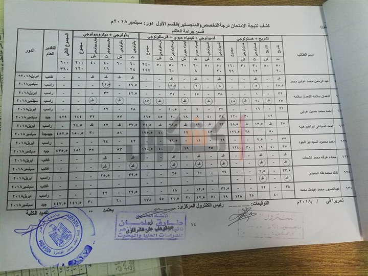 أعتمد الدكتور أحمد سليم عميد كلية الطب للبنبن بمدينة نصر، نتيجة الدور الأول لطلاب الماجستير بجميع أقسام الكلية، وذلك بعد الانتهاء من تصحيح الأوراق ومراجعتها على مدار أسبوعين كاملين.