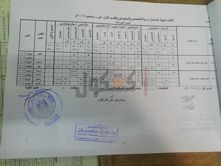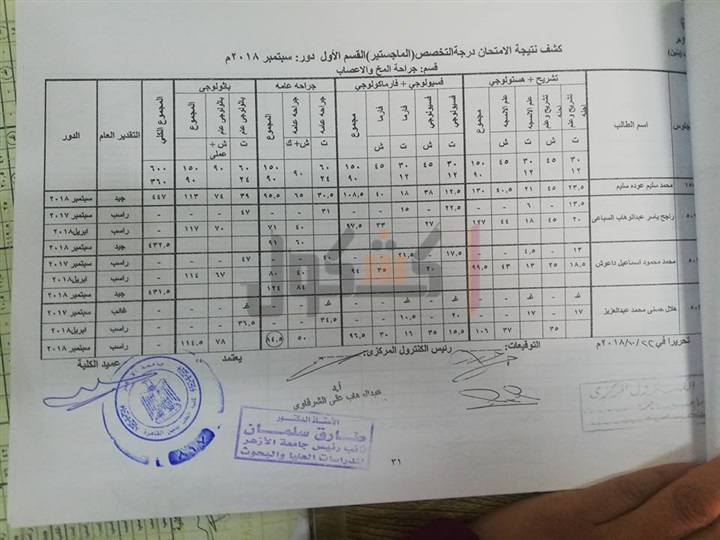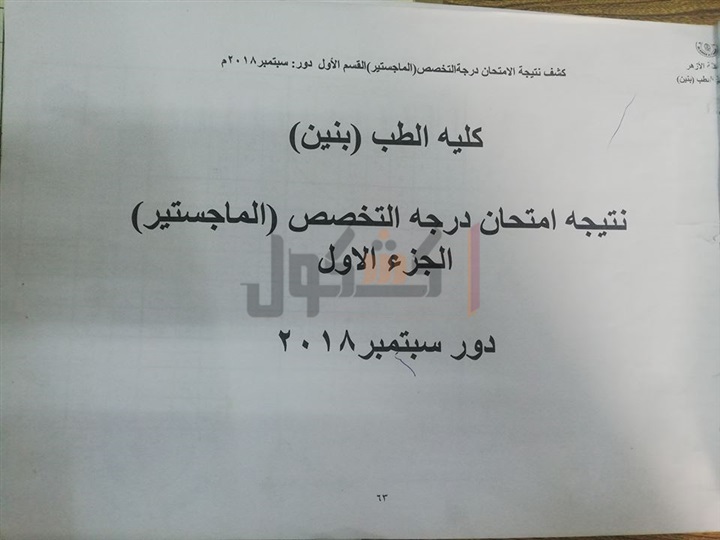 بالصور.. ننشر نتيجة إمتحانات الماجستير بطب الأزهر