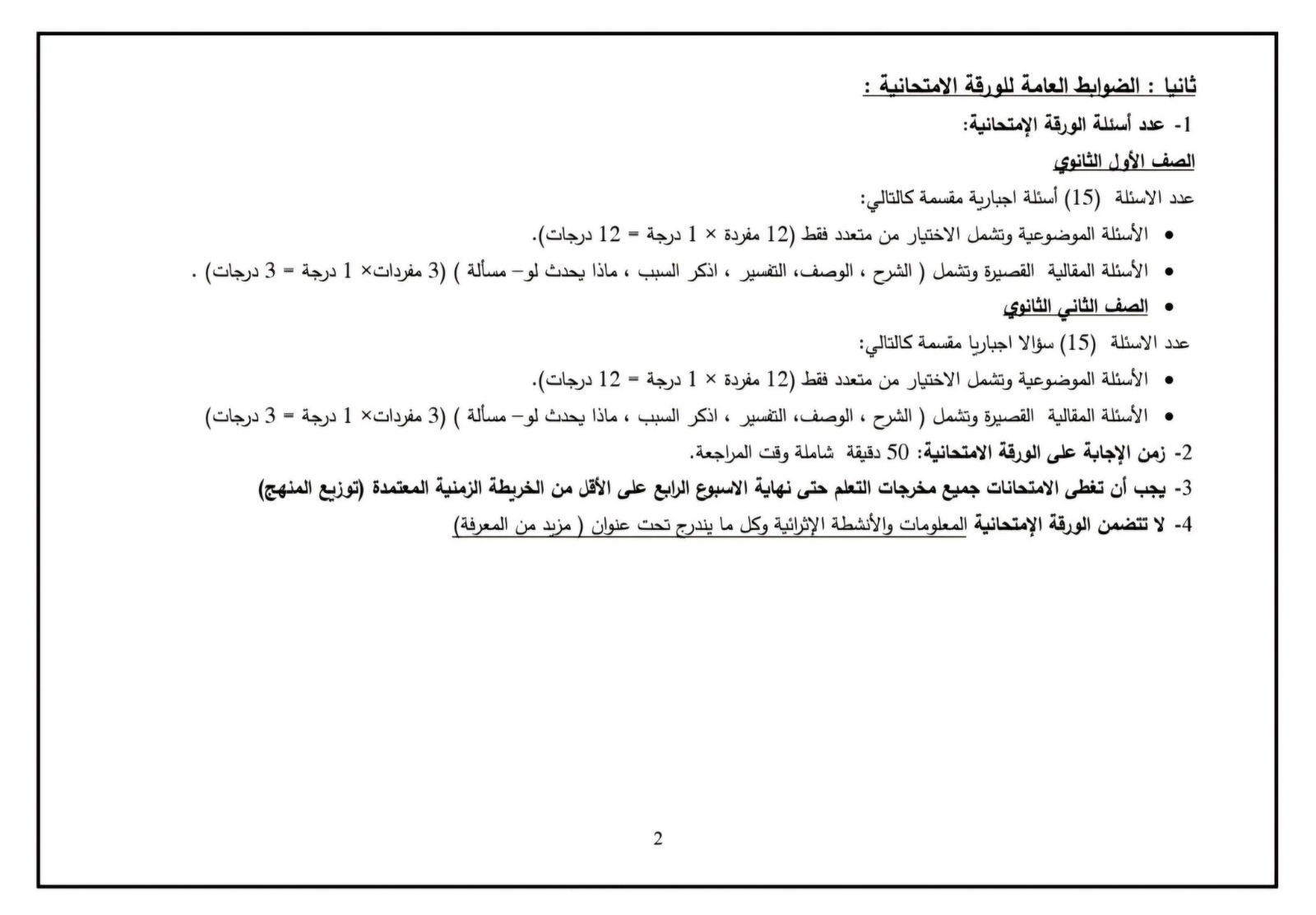عاجل| ننشر مواصفات الاختبارات الشهرية للصفين الأول والثاني الثانوي
