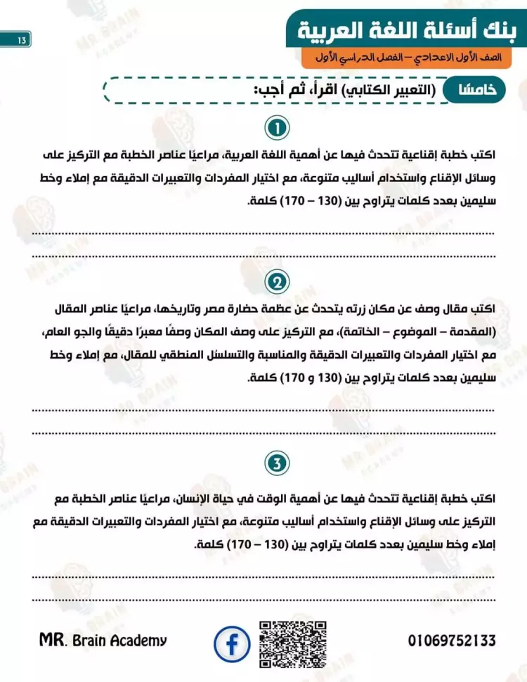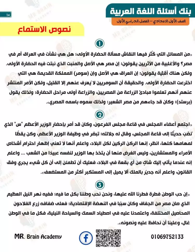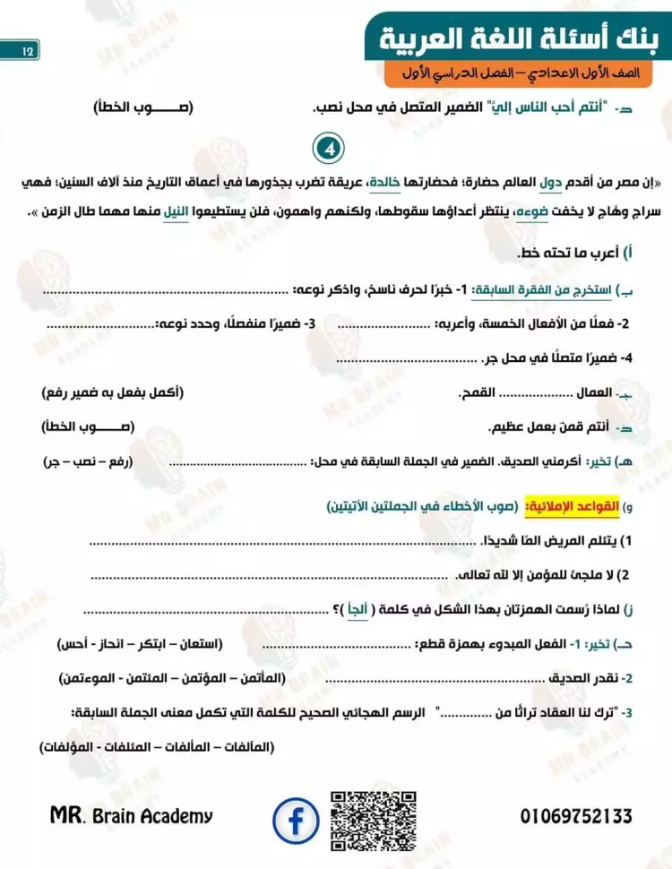 مراجعة لغة عربية للصف الأول الإعدادي شهر أكتوبر 2024
