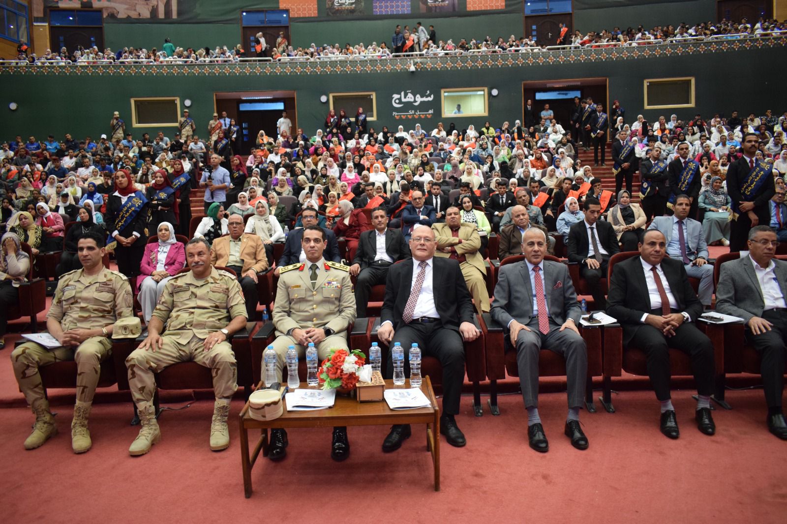 شهد الدكتور حسان النعماني رئيس جامعة سوهاج، والعقيد أركان حرب غريب عبدالحافظ المتحدث العسكري للقوات المسلحة المصرية الندوة التثقيفية التي نظمتها إدارة رعاية الشباب المركزية بالجامعة تحت عنوان "نصر أكتوبر الطريق إلى الجمهورية الجديدة"، وذلك بالمركز الدولي للمؤتمرات بمقر الجامعة الجديد، بحضور الدكتور عبدالناصر الدكتور خالد عمران نواب رئيس الجامعة، العميد نادر نبيل المستشار العسكري للمحافظة، المحاسب أشرف القاضي أمين عام الجامعة، المقدم محمد حمدي مدير إدارة التربية العسكرية بالجامعة، وعمداء الكليات ووكلائهم، ونخبة من القيادات الأمنية والتنفيذية بالمحافظة، وممثلي الأزهر والكنيسة، ووكلاء الوزارات، وعدد من قيادات المجتمع المدني.