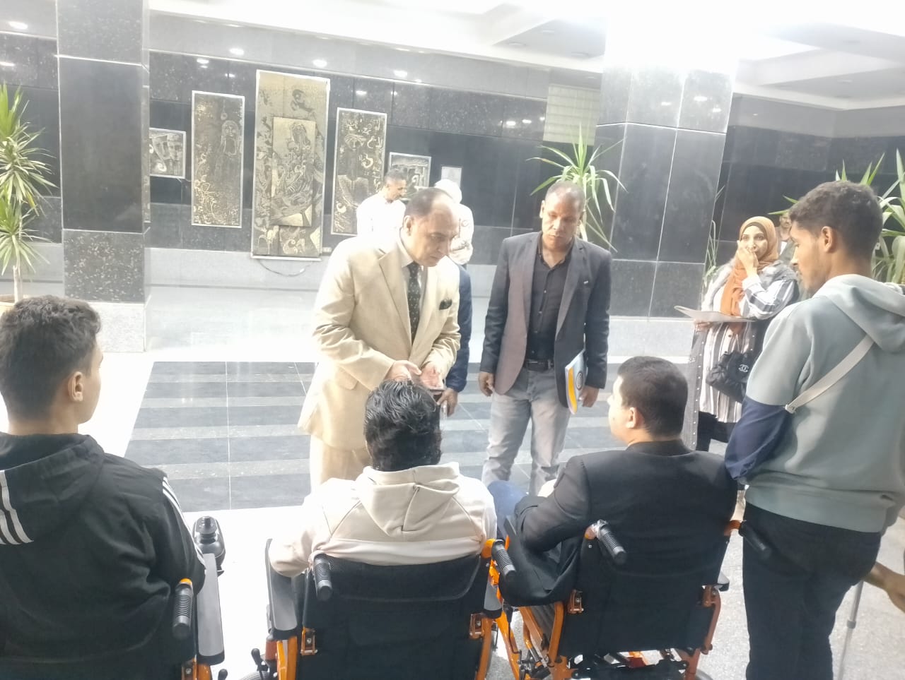 سلم الدكتور إيهاب الببلاوي نائب رئيس جامعة الزقازيق للدراسات العليا والبحوث والقائم بأعمال نائب رئيس الجامعة لشئون التعليم والطلاب، اليوم الأحد الموافق ٢٠٢٤/١١/٣م، عدد ٤ كراسٍ كهربائية متحركة، وكرسي متحرك، و٣ أطراف صناعية، إلى عدد من الطلاب ذوي الهمم بمبنى رئاسة جامعة الزقازيق، وذلك في إطار توجيهات الرئيس عبدالفتاح السيسي رئيس الجمهورية بالاهتمام بذوي الهمم، وتحت رعاية الدكتور خالد الدرندلي رئيس جامعة الزقازيق.