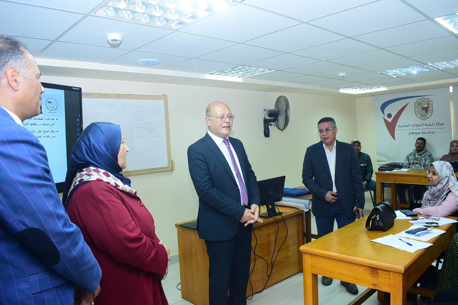 رئيس جامعة سوهاج يتفقد الدورات التدريبية لتأهيل عدد 330 موظف بالجهاز الإداري