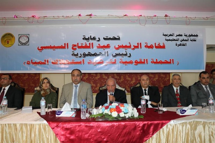 قال "خلف الزناتي" نقيب المعلمين ورئيس اتحاد المعلمين العرب أن قضية المياه أصبحت قضية أمن قومي للدولة المصرية وأصبحنا نقترب من حد ندرة المياه طبقاً للتصنيفات المعمول بها في الأمم المتحدة، لافتاً الى أن نقابة المعلمين سترفع توصية الى كل الجهات المعنية بوجوب شمول المناهج الدراسية لكل المراحل التعليمية وحتى مرحلة الجامعه على قضية التوعية بترشيد المياه.