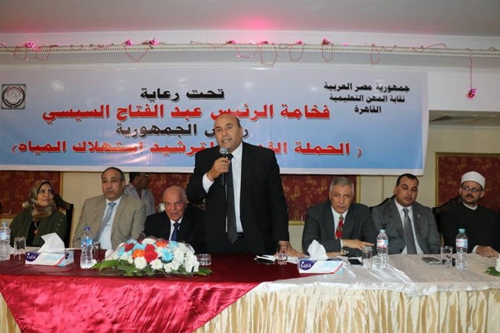 جاء ذلك خلال مؤتمر "الحملة القومية لترشيد استهلاك المياه – حملة الأمن المائي – 2018 –2019" برعاية السيد الرئيس "عبد الفتاح السيسي" المنعقد اليوم الجمعة بمقر النقابة العامة للمعلمين بالجزيرة بالتعاون مع النقابات المهنية وائتلاف حب الوطن والهيئة العربية للتصنيع ووزارة الإنتاج الحربي ومؤسسات المجتمع المدني والهيئة القومية لمياه الشرب.