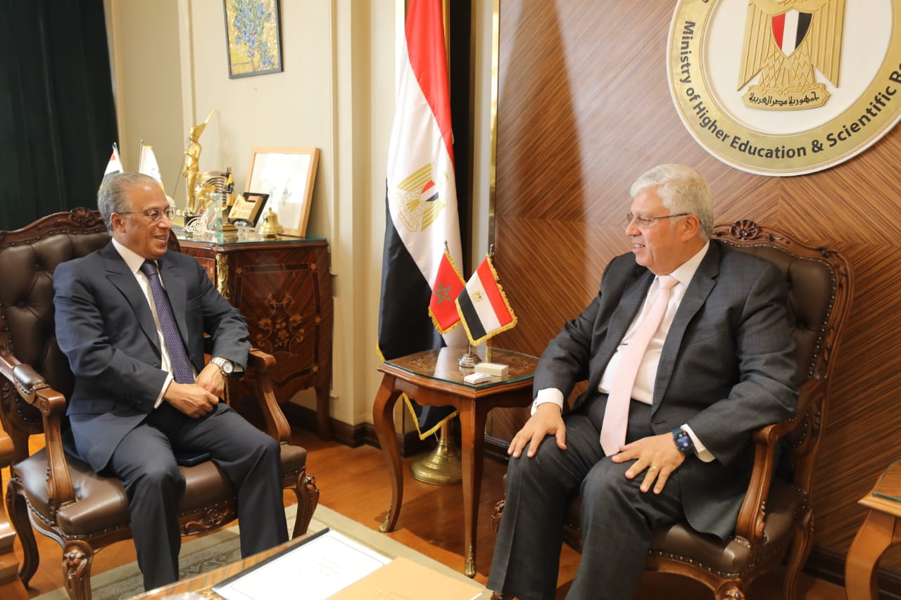 وناقش وزير التعليم العالي والبحث العلمي، مع السفير المغربي سُبل تعزيز التعاون بين الجامعات المصرية ونظيرتها المغربية، مشيرًا إلى حجم التوسع الذي تم تحقيقه في منظومة التعليم العالي المصرية، الذي يسمح بفتح آفاق متنوعة لأشكال جديدة من التعاون مع مختلف روافد الجامعات المصرية الحكومية والخاصة والأهلية والتكنولوجية، وكذا مختلف التخصصات العلمية، مؤكدًا تركيز الاهتمام على التخصصات الحديثة المواكبة للتطورات التي يشهدها العالم في مجال العلوم والتكنولوجيا وغيرها.