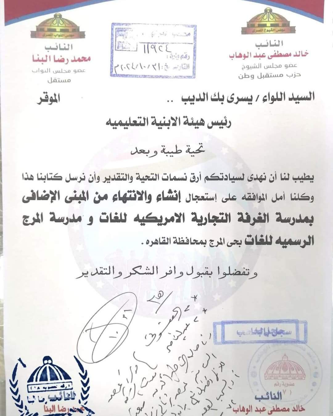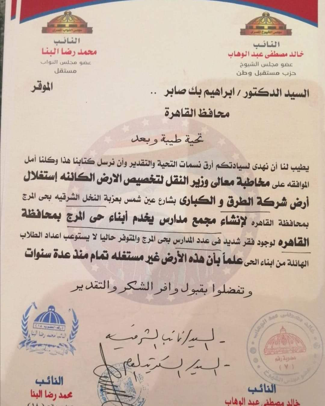 جاء ذلك للقضاء على ارتفاع الكثافة الطلابية بالفصول، وبعد الموافقة على طلب النائب محمد رضا البنا والنائب خالد مصطفى عبد الوهاب باستغلال أرض شركة النيل العامة للطرق والكبارى التابعه لوزارة النقل بشارع عين شمس بجوار طلعة كوبرى عزبة النخل الشرقية لبناء مجمع مدارس للقضاء على الكثافة الطلابيه المرتفعة.