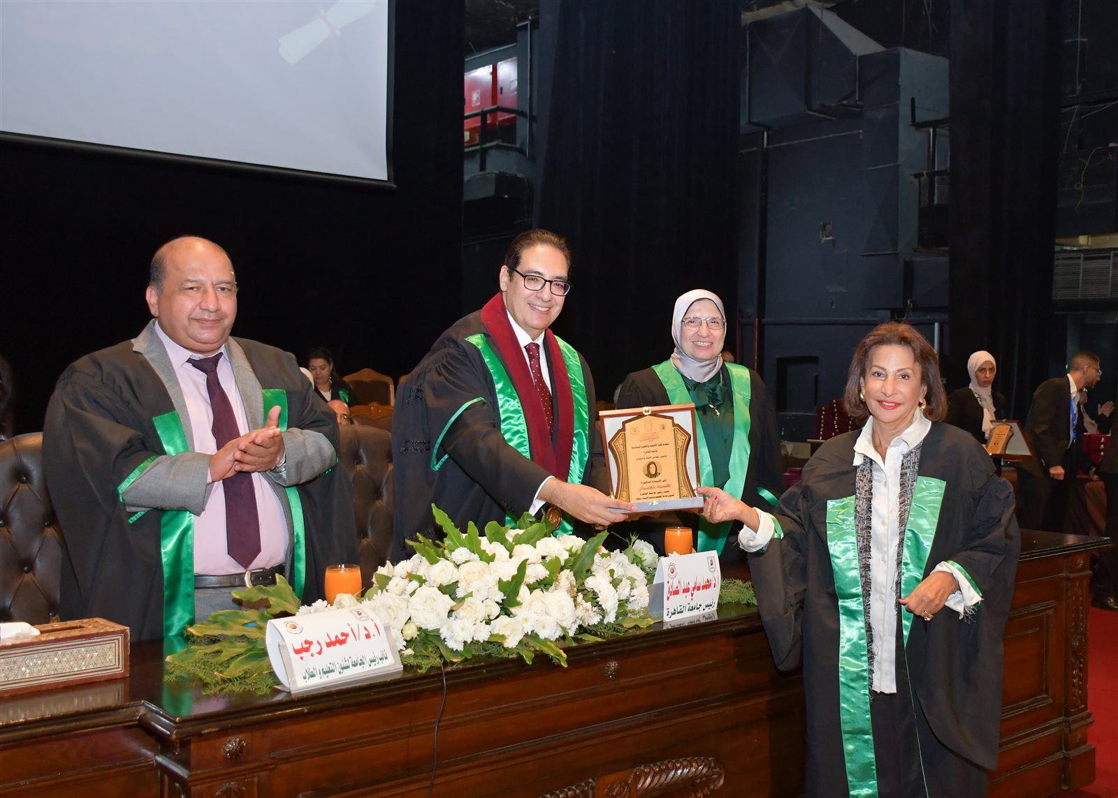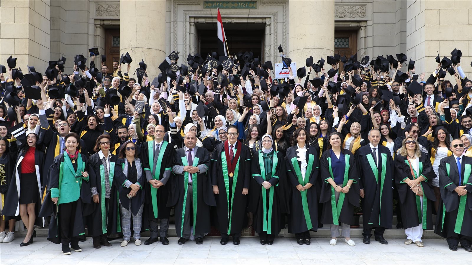 وبدأت وقائع الاحتفال بالتقاط صورة جماعية للخريجين أمام قبة الجامعة، بحضور رئيس الجامعة، ثم بدأ الاحتفال داخل القاعة بالسلام الجمهوري، وتلاوة آيات من القرآن الكريم، أعقبها كلمات ممثلي الخريجين لمرحلة البكالوريوس، ودفعات ١٩٧٤ و١٩٩٩، وكلمة عميدة الكلية، ثم كلمة السفير عادل المليجي رئيس رابطة خريجي جامعة القاهرة، وكلمة رئيس الجامعة، ثم فعاليات التكريم.